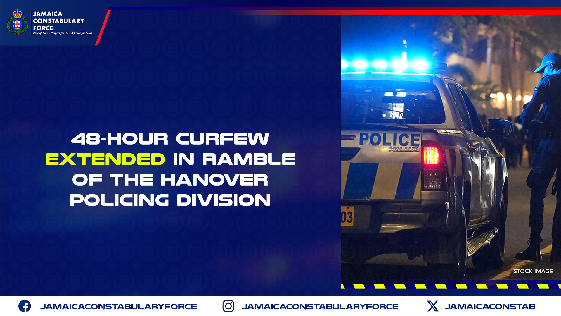 The 48-hour curfew that was imposed in Ramble of the Hanover Policing Division, has been extended. The curfew will continue from 6:00 p.m. on Saturday, February 07, and will remain in effect until 6:00 p.m. on Monday, February 09.