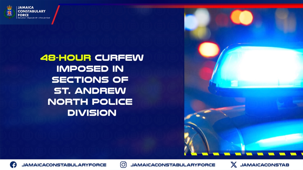 A 48-hour curfew has been imposed in sections of the St. Andrew North Police Division. The curfew began at 6:00 p.m. Friday, December 12 and will remain in effect until 6:00 p.m. on Sunday, December 14.