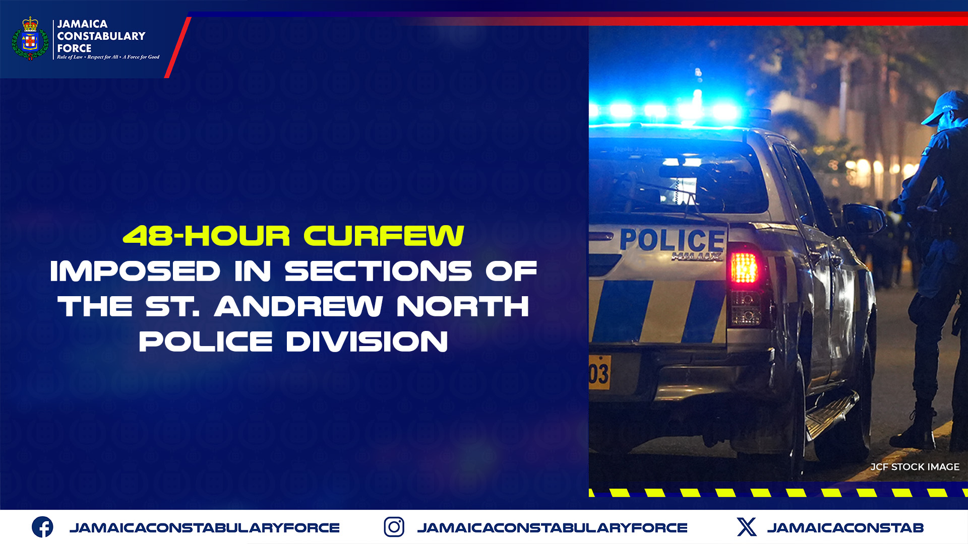 A 48-hour curfew has been imposed in sections of the St Andrew North Policing Division. The curfews commenced from 6:00 p.m. on Friday, January 23, and will remain in effect until 6:00 p.m. on Sunday, January 25.