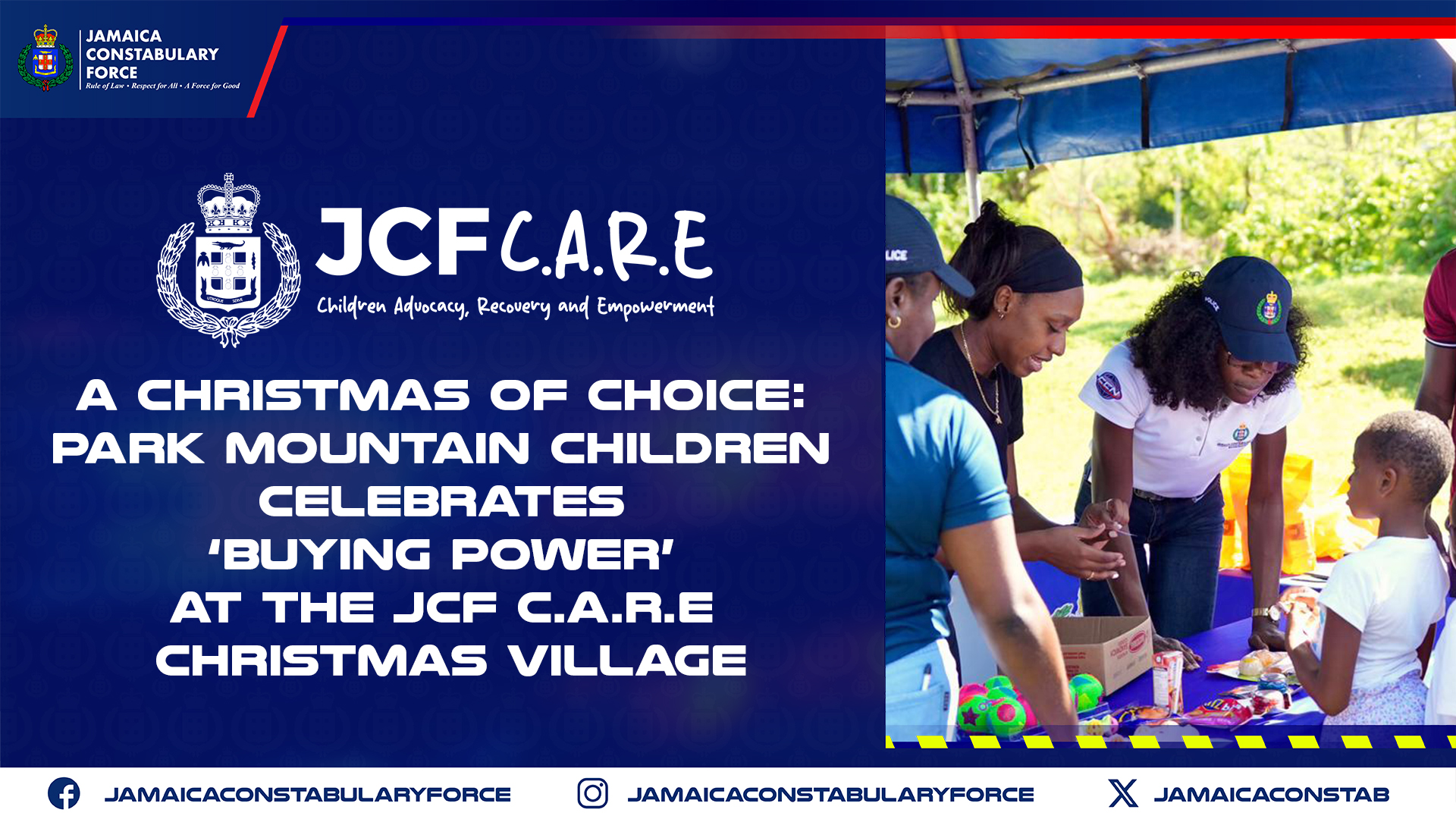 They brought no magical sleigh or reindeer, but the Jamaica Constabulary Force (JCF), through its CARE Initiative Christmas village, brought a festive spirit that delivered bright smiles, good cheer and a renewed sense of independence to Park Mountain in St Elizabeth. The star of the second staging of this give-back venture was the faux bank notes, the JCF Bucks.