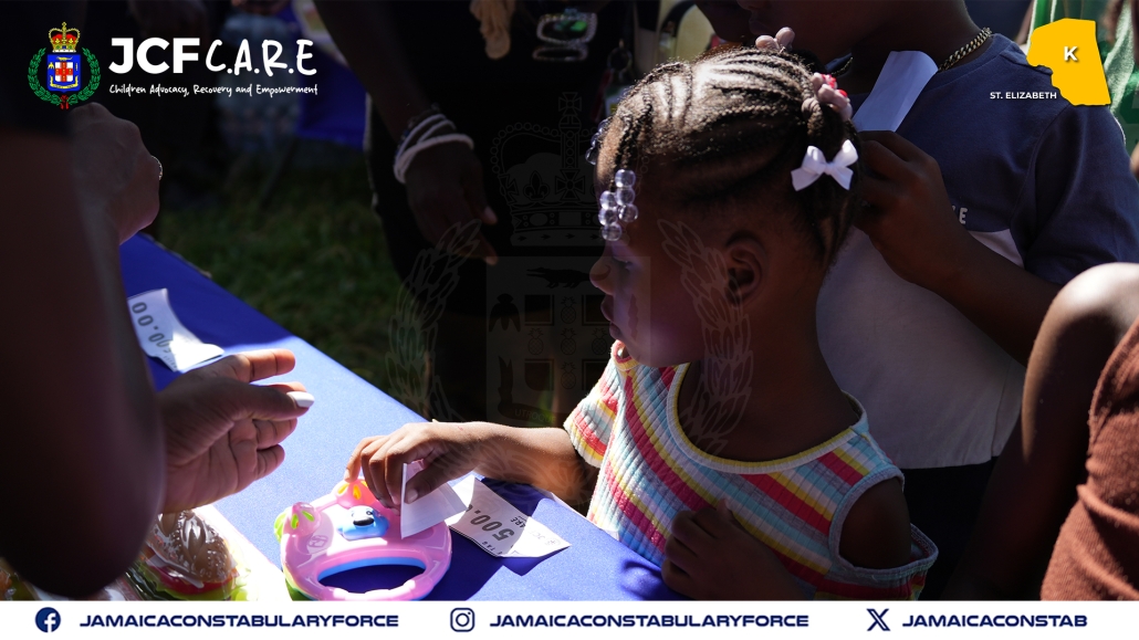 One of the most touching moments of the day came from 9-year-old Kairique Honeyghan, a member of the Santa Cruz Police Youth Club, who had his eyes set on a pair of brown shoes from the moment he stepped into the Village. He withdrew his money from the bank and counted it multiple times before he made his way to the boutique to make his purchase. When he handed his money to the salesperson and received the shoes, he beamed with pride. Swinging the laces around his neck, he proudly announced, “I am wearing these to church next week.” He walked around, showing them off to everyone in sight—officers, other children, and community members who were standing near the tent. His excitement was more than just getting a new pair of shoes. It was the pride of selecting and purchasing them himself, making his own decision, and bringing home something he truly wanted.