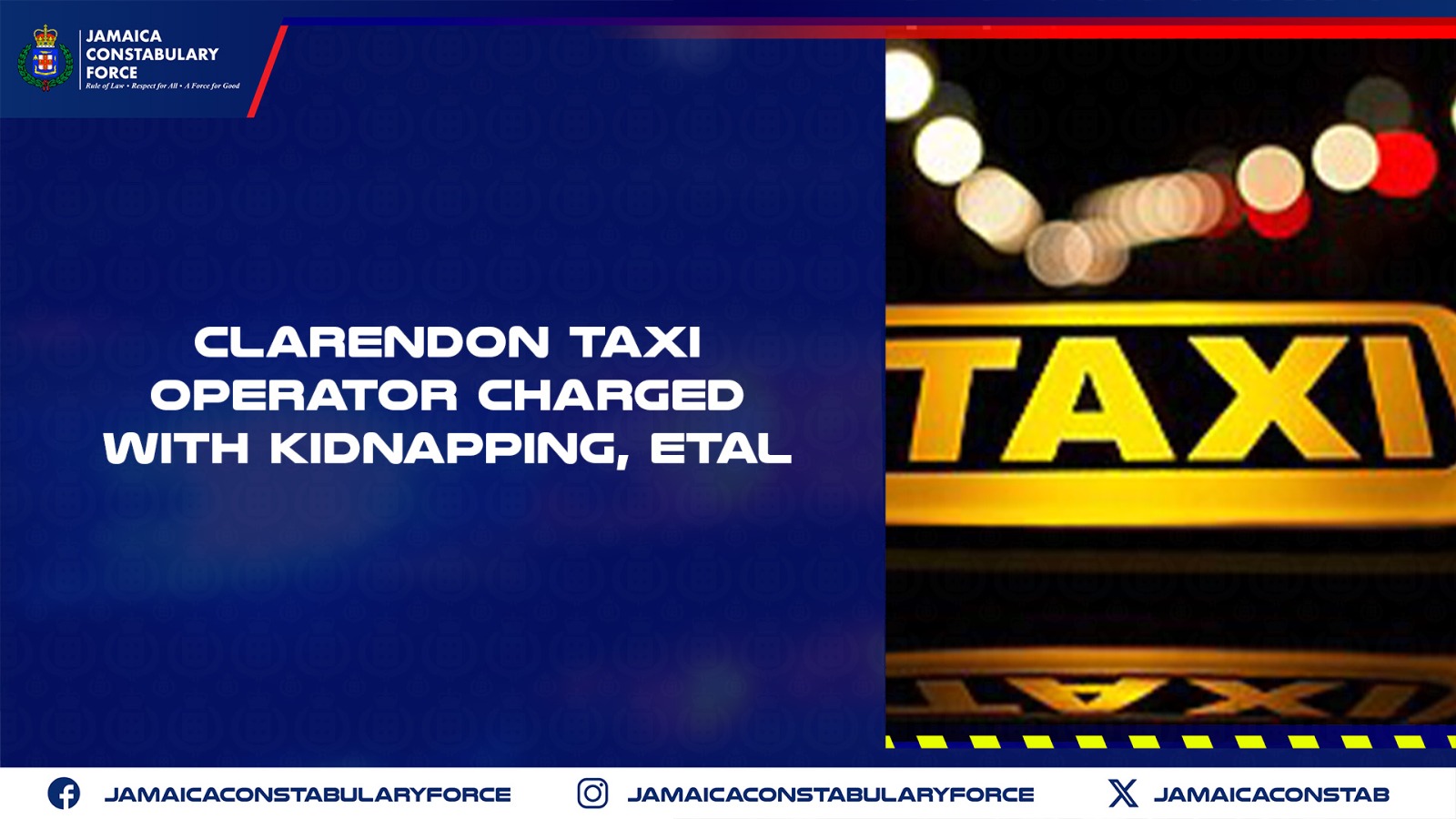 CLARENDON TAXI OPERATOR CHARGED WITH KIDNAPPING, ETAL