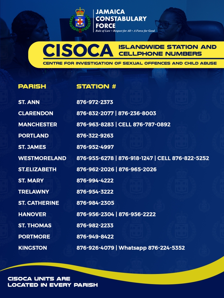Centre for Investigation of Sexual Offences and Child Abuse (CISOCA) Island wide Station and Cellphone Numbers
