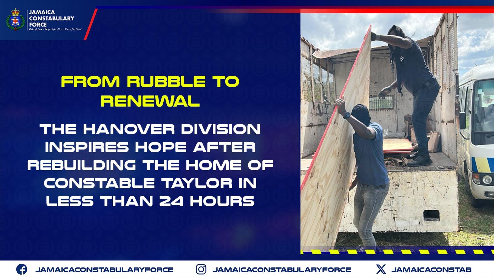 FROM RUBBLE TO RENEWAL- THE HANOVER DIVISION INSPIRES HOPE AFTER REBUILDING THE HOME OF CONSTABLE TAYLOR IN LESS THAN 24 HOURS