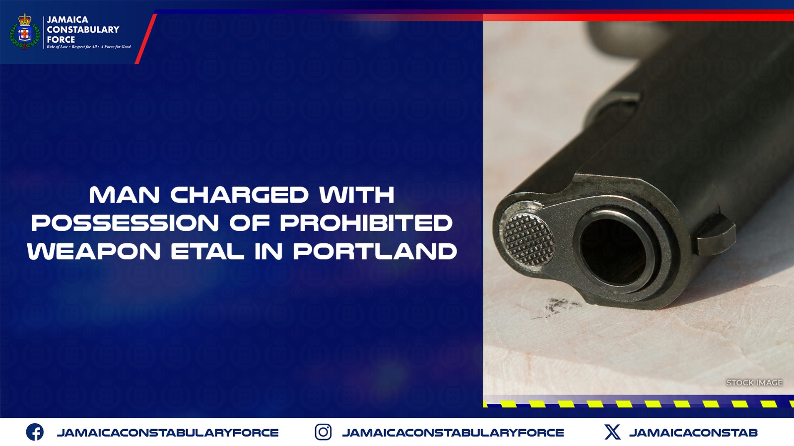 Fifty-three-year-old Manley McKenzie, otherwise called ‘Degeh,’ a carpenter of McWinney Street, Kingston, and Nonsuch District, Portland, has been charged with several gun-related offences following an incident in Nonsuch District, Portland, on Sunday, December 25, 2022.