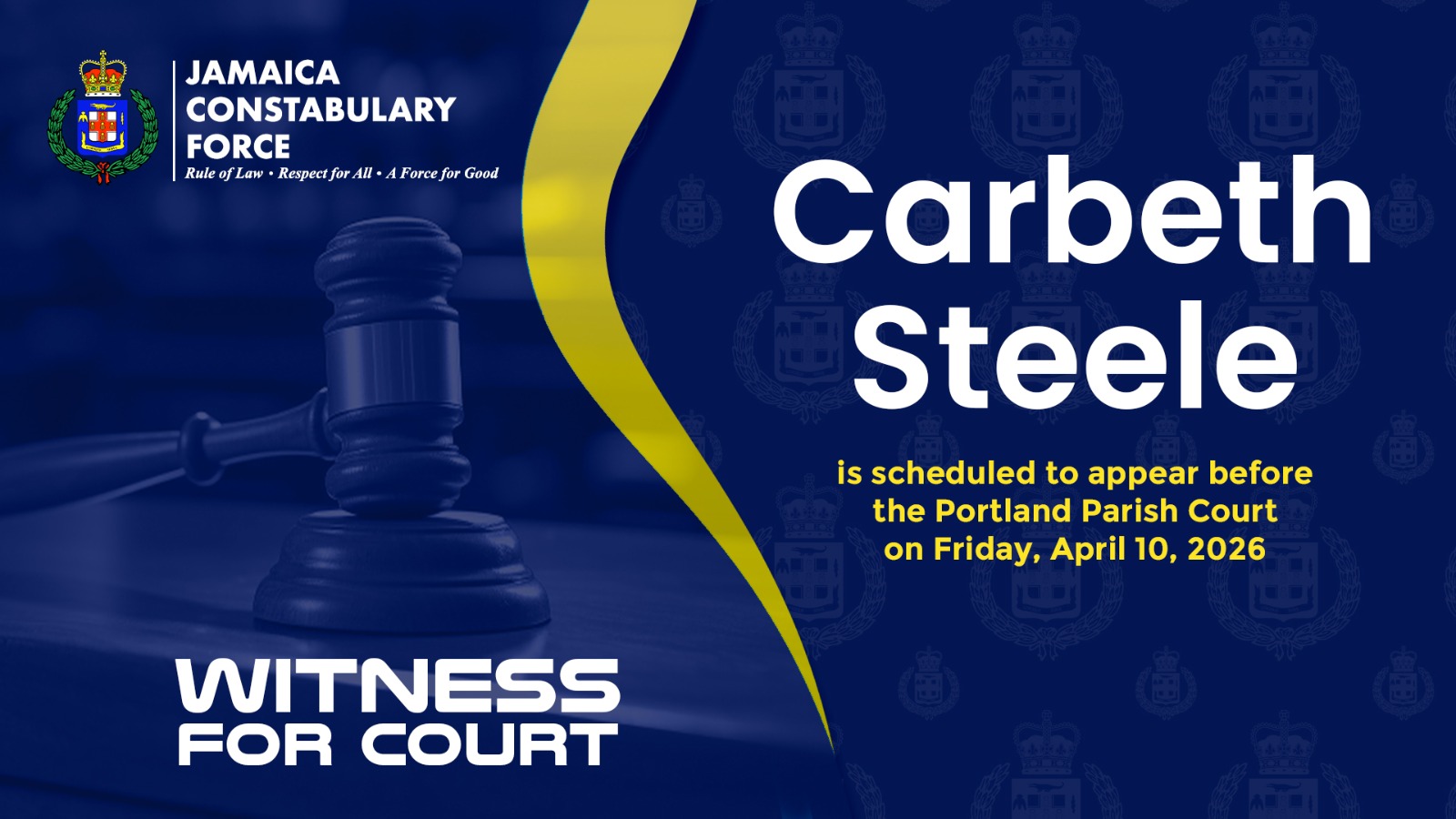 Detectives assigned to the Portland Policing Division are seeking the public’s assistance in locating a witness who is vital to a case currently before the Portland Parish Court.