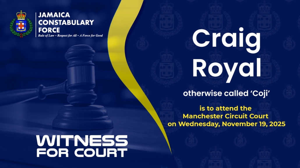 Detectives assigned to the Manchester Criminal Investigation Branch (CIB) are seeking the public’s assistance to locate a witness who is vital to a case currently before the Manchester Circuit Court.