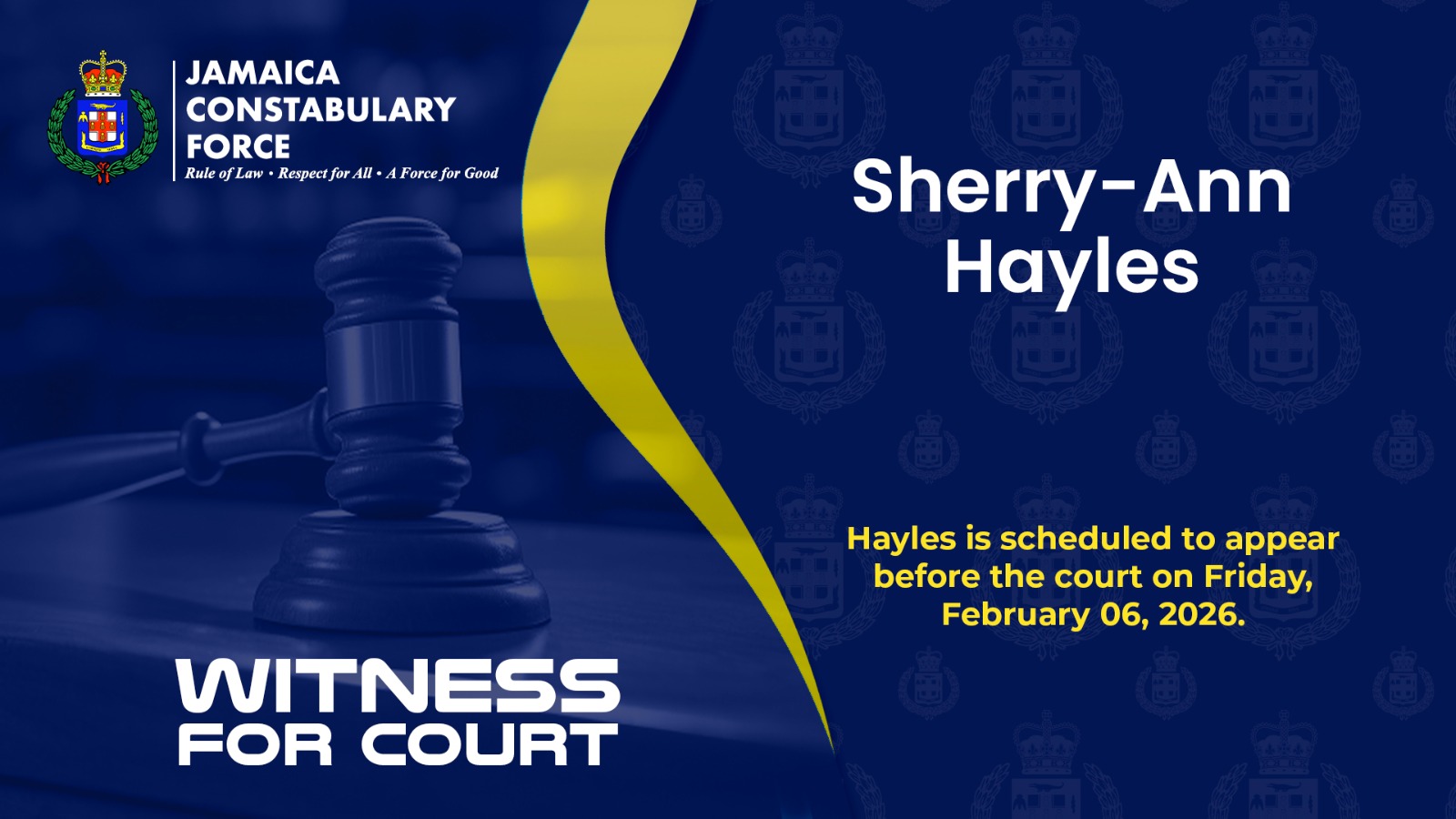 Hayles is scheduled to appear before the court on Friday, February 06.