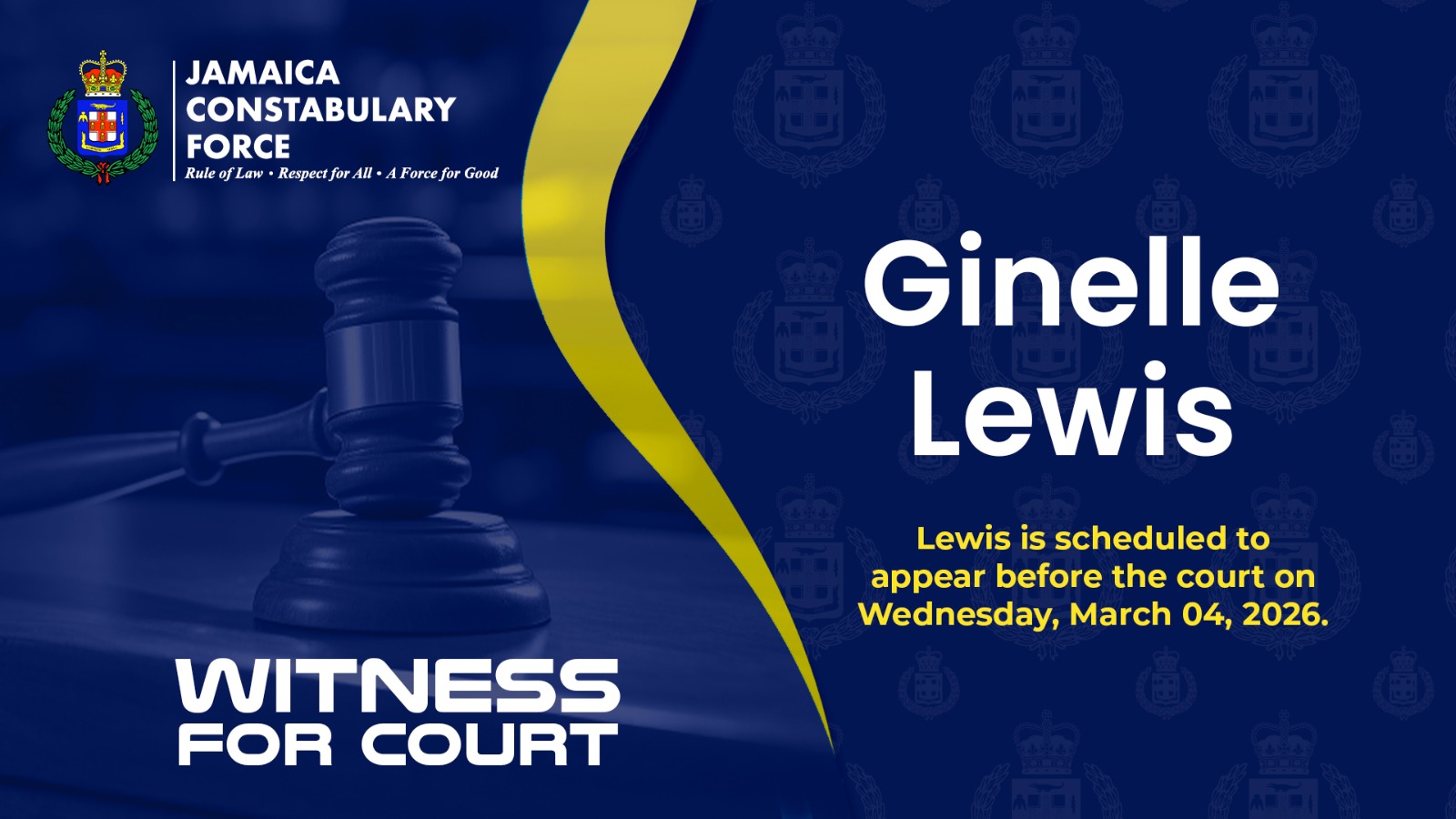 Ginelle Lewis or anyone knowing her whereabouts is asked to contact the CISOCA office at 876- 963-8283, the police emergency 119 number, or the nearest police station.
