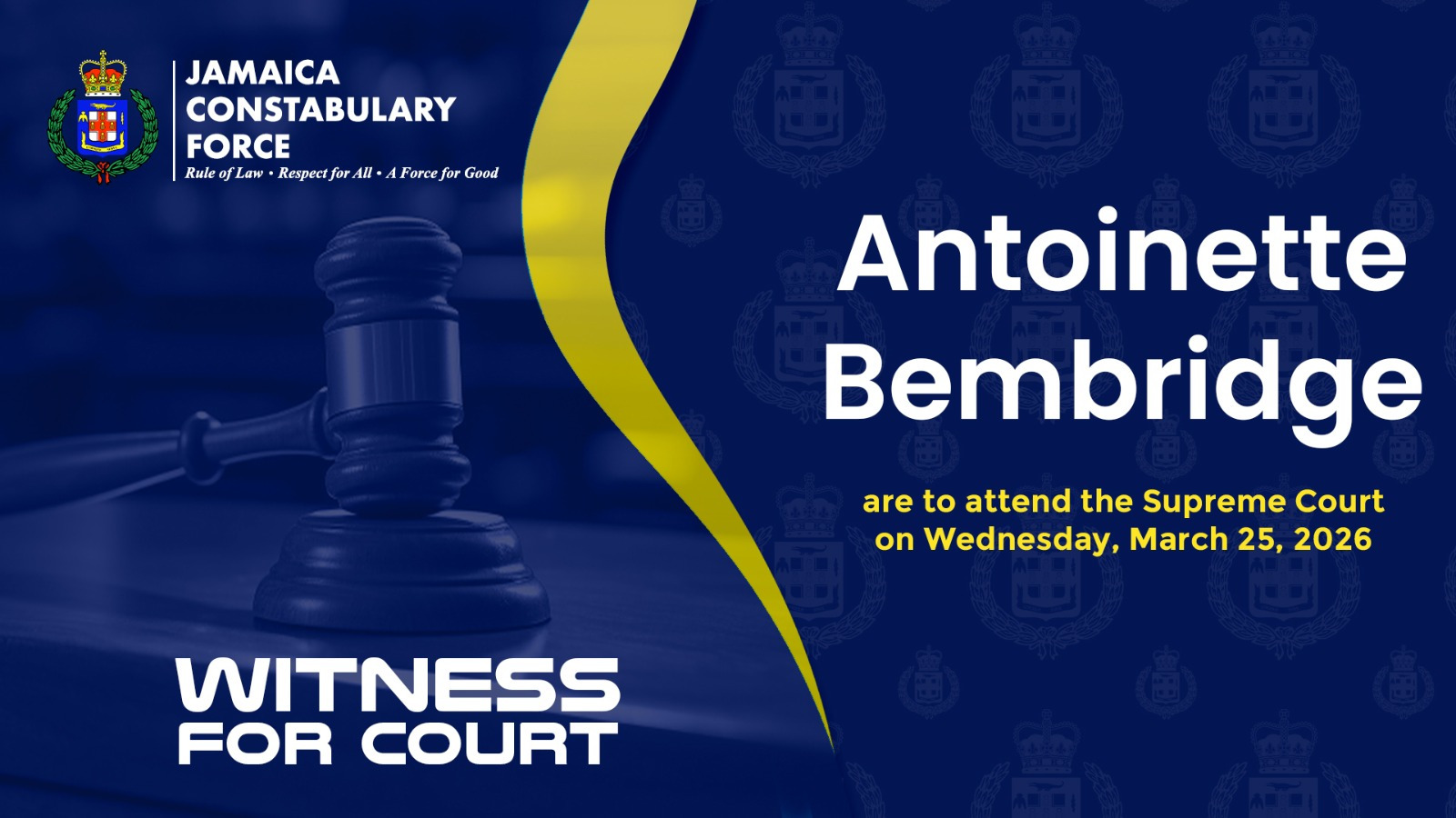 Detectives assigned to the St Andrew South Division Criminal Investigation Branch (C.I.B) are seeking the public’s assistance in locating a witness who is vital to a case currently before the Supreme Court.