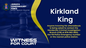 Kirkland King, or anyone who knows his whereabouts, is asked to contact the Mandeville CIB at 876-962-2832, the police emergency number 119, or the nearest police station.