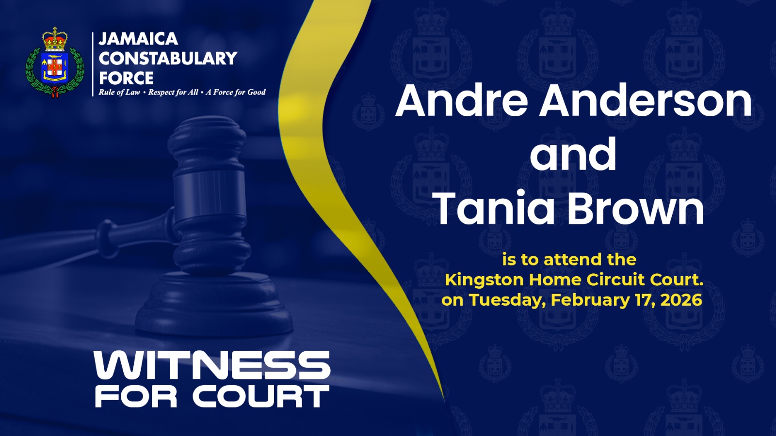 Detectives assigned to the National Strategic Anti-Gang Division are seeking the public’s assistance in locating two witnesses who are vital to a case currently before the Kingston Home Circuit Court.
