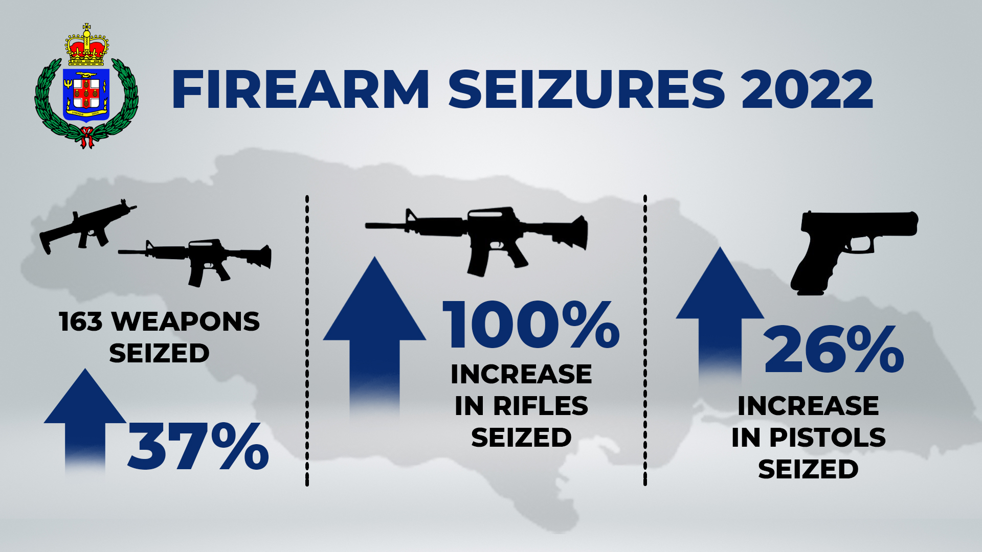 According to Commissioner of Police Major General Antony Anderson, there has been an over 100% increase in the total number of rifles seized since January.