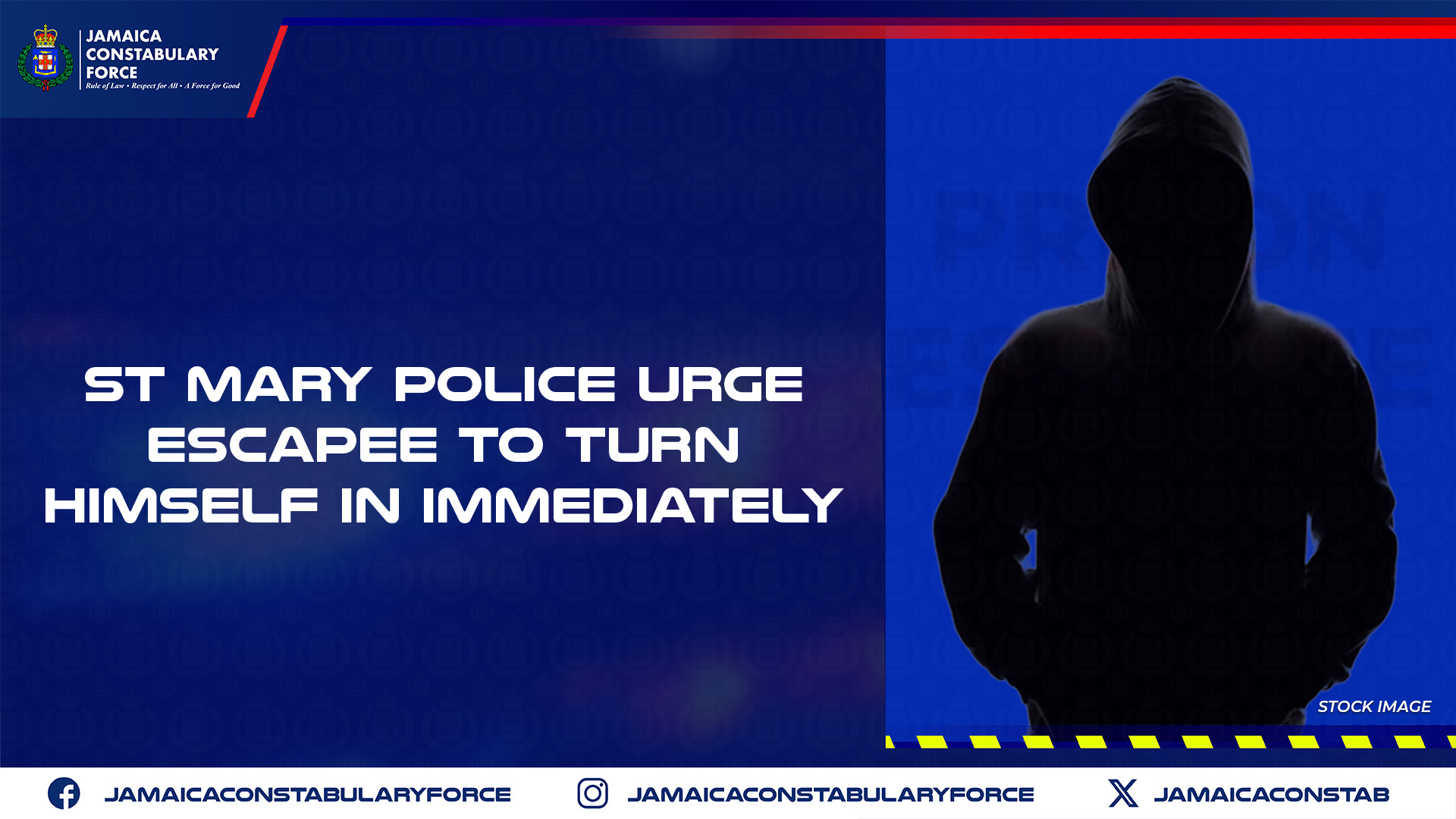 ST MARY POLICE URGE ESCAPEE TO TURN HIMSELF IN IMMEDIATELY