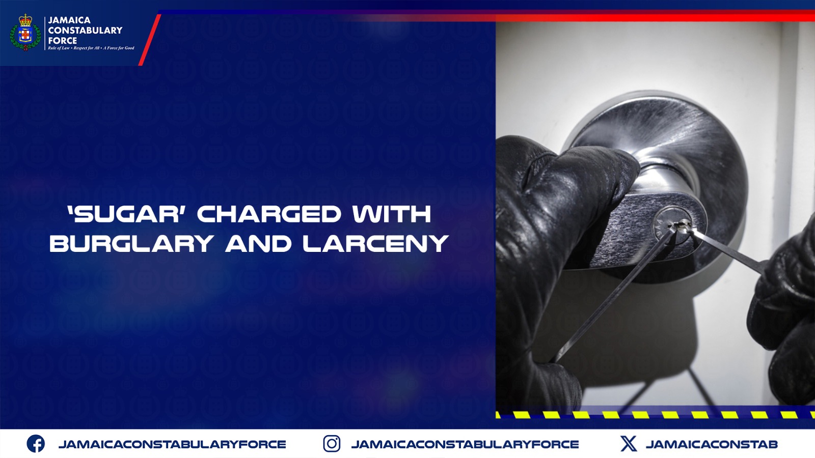 ‘SUGAR’ CHARGED WITH BURGLARY AND LARCENY