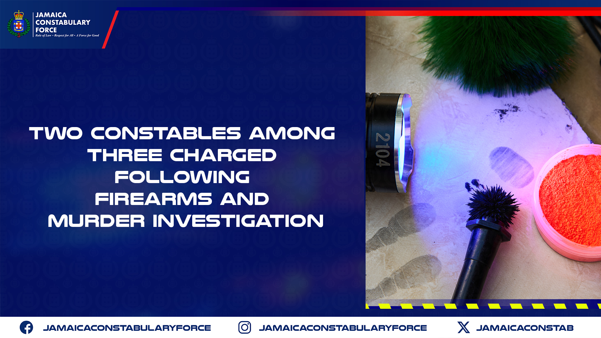 Two serving members of the Jamaica Constabulary Force (JCF) and a 19-year-old man have been charged following what began as a firearms investigation and later evolved into a murder probe spanning multiple divisions.