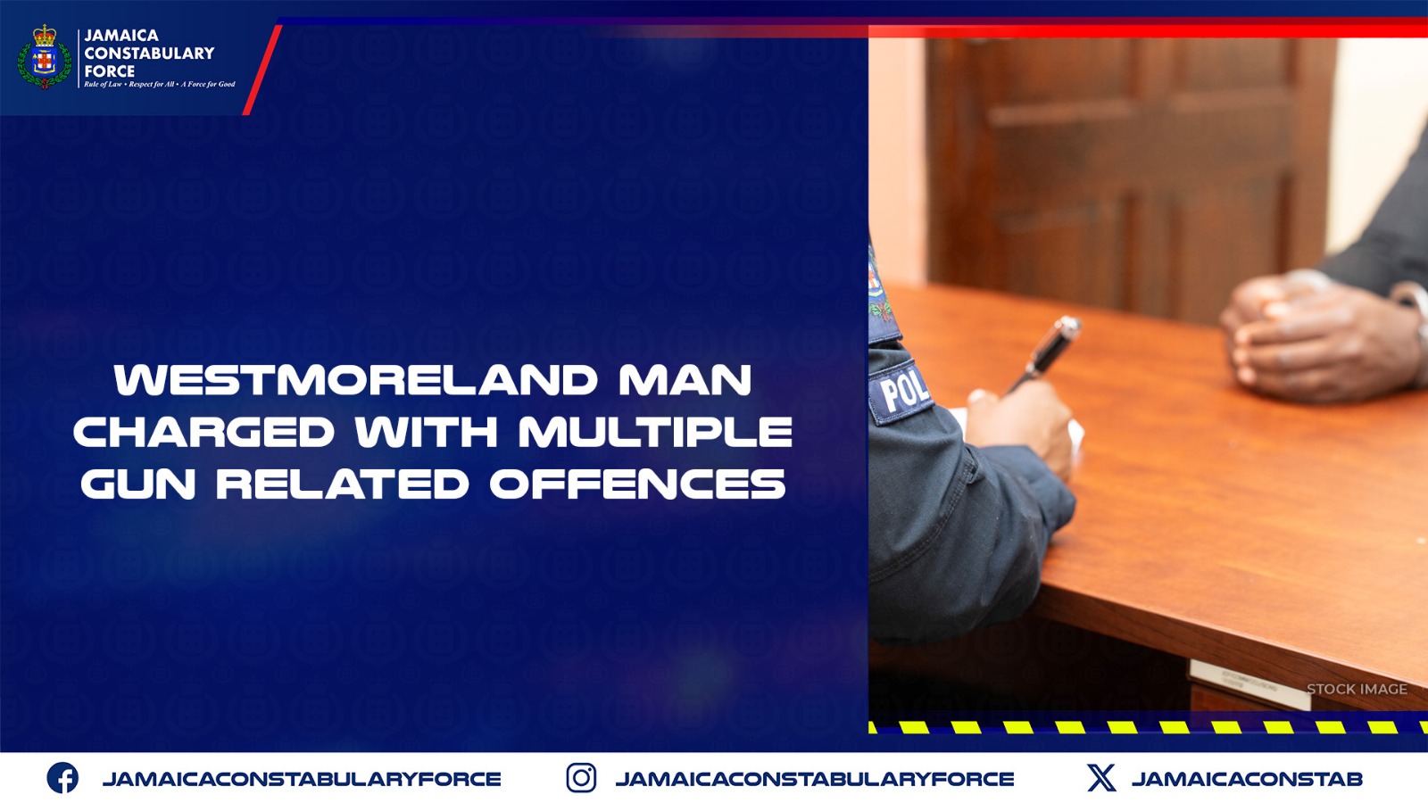 Twenty-nine-year-old Skywaynie Robinson, otherwise called ‘Bazzel,’ a labourer of Miller Hill, Berkshire district, Westmoreland, has been charged with multiple firearm-related offences following an incident at a business establishment in the parish on Friday, November 7, 2025.